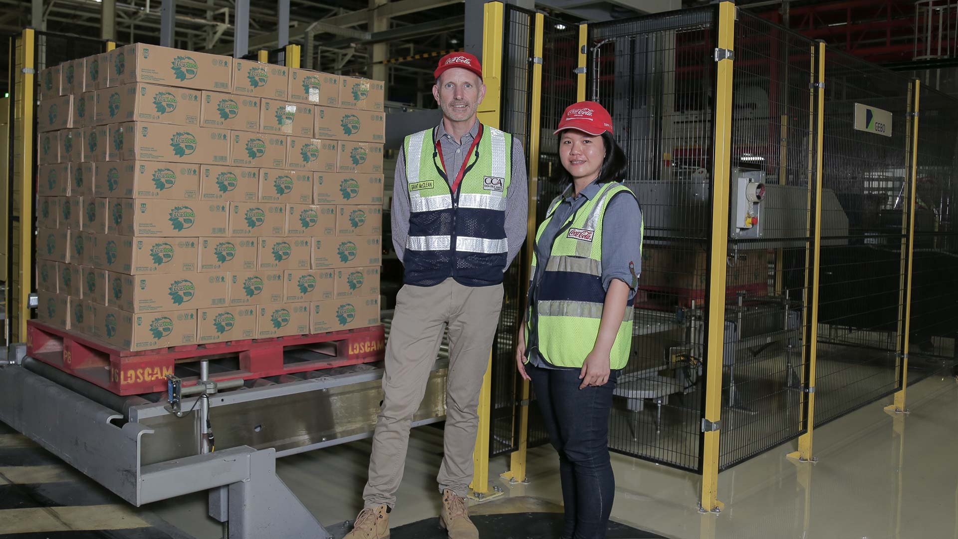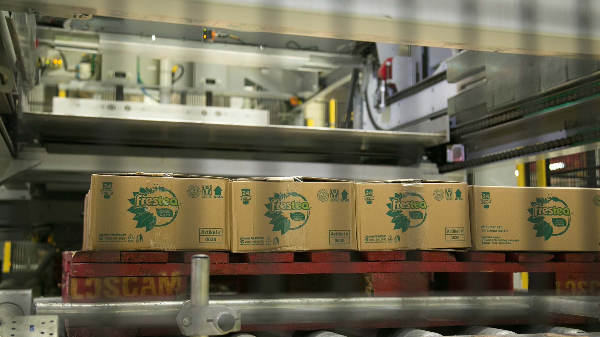 The Coca-Cola Company has invested more than $1.2 billion in Indonesia, a dynamic and fast-growing market. Coca-Cola Amatil Indonesia (CCAI) manufactures and distributes non-alcoholic ready-to-drink beverages like carbonated soft drinks, teas and juice in PET bottles, as well as tea in plastic cups – the ultimate on-the-go format. The original line featured manual palletising at its end-of-line, causing a lot of congestion, safety and labour-management issues, and requiring a large team of casual workers to carry it out. The company began searching for an automatic palletising solution to enable a continuous production line with more efficient use of labour.