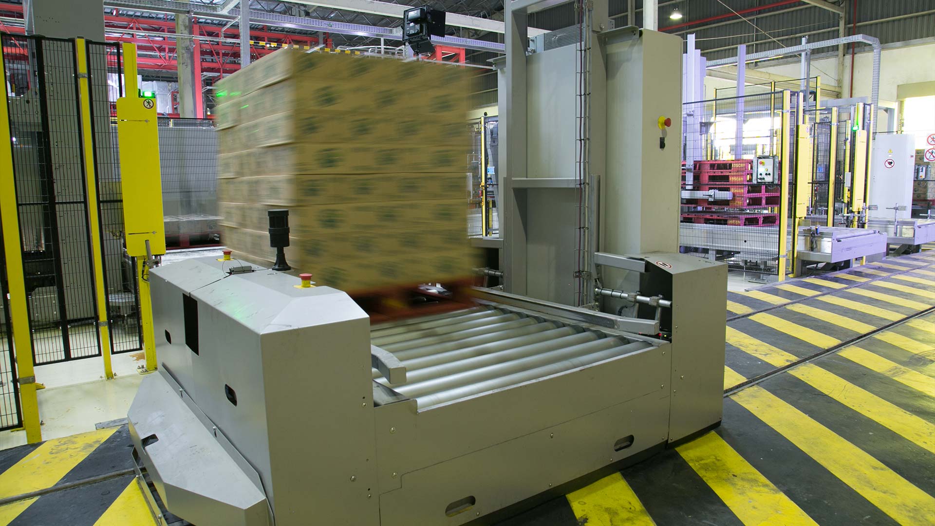 The three palletisers supplied by Sidel were U-shaped with empty pallet infeeds and full-pallet outfeeds on the same side of the machine. The shuttle-car system continuously takes the loaded pallets to a pallet conveyor where the pallets are stretch-wrapped before being taken to waiting forklift trucks, reducing forklift truck traffic and increasing site safety. Together with optimised efficiency and higher overall equipment effectiveness (OEE), this solution allows for a much better management of the labour force. The team at the Cikedokan plant now has a more organised and efficient production line, which can run continuously and uses space in a smarter way.