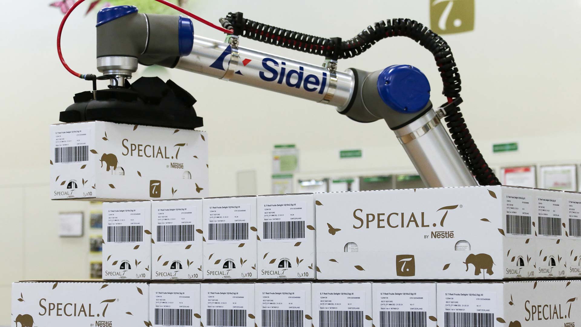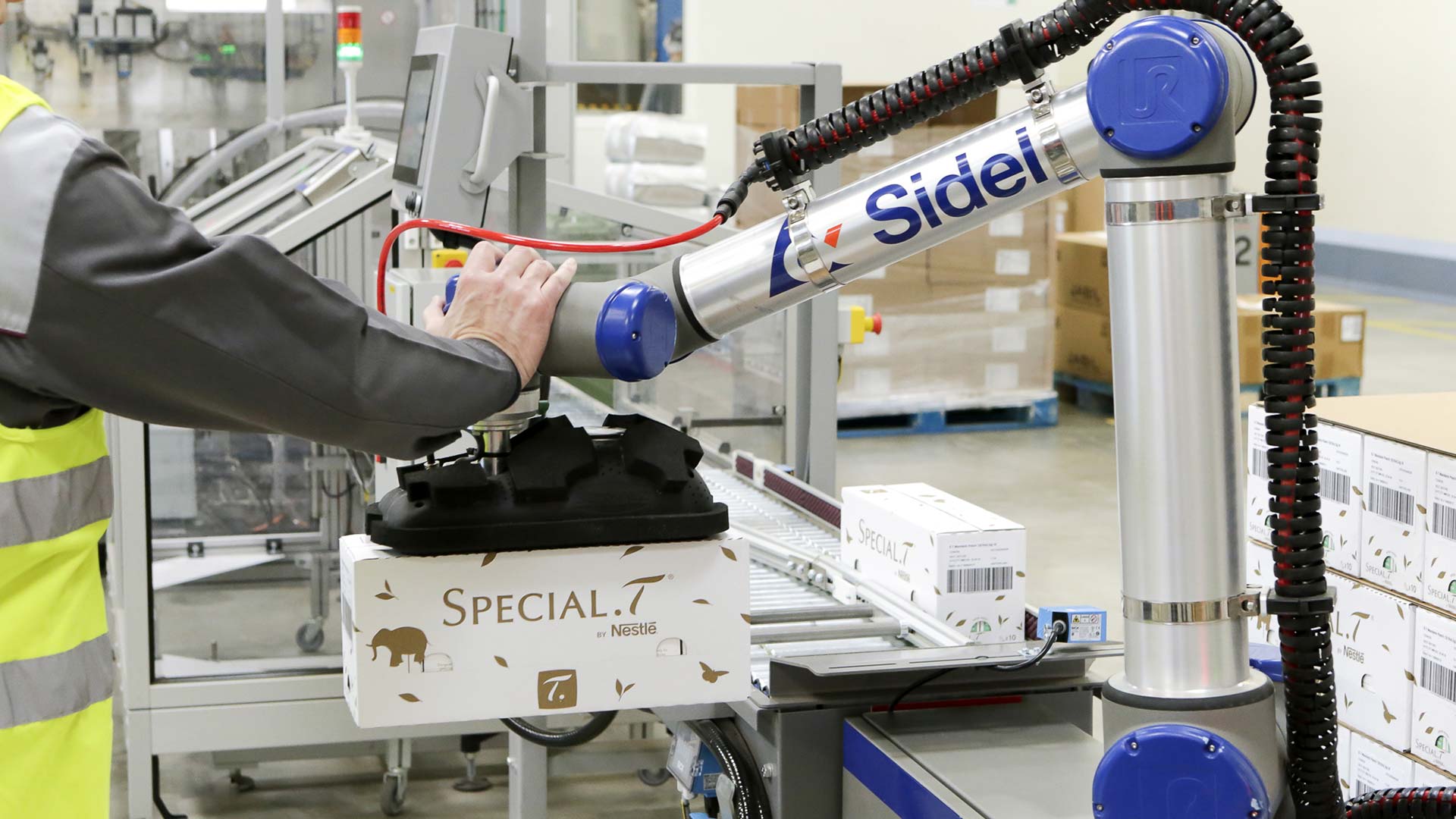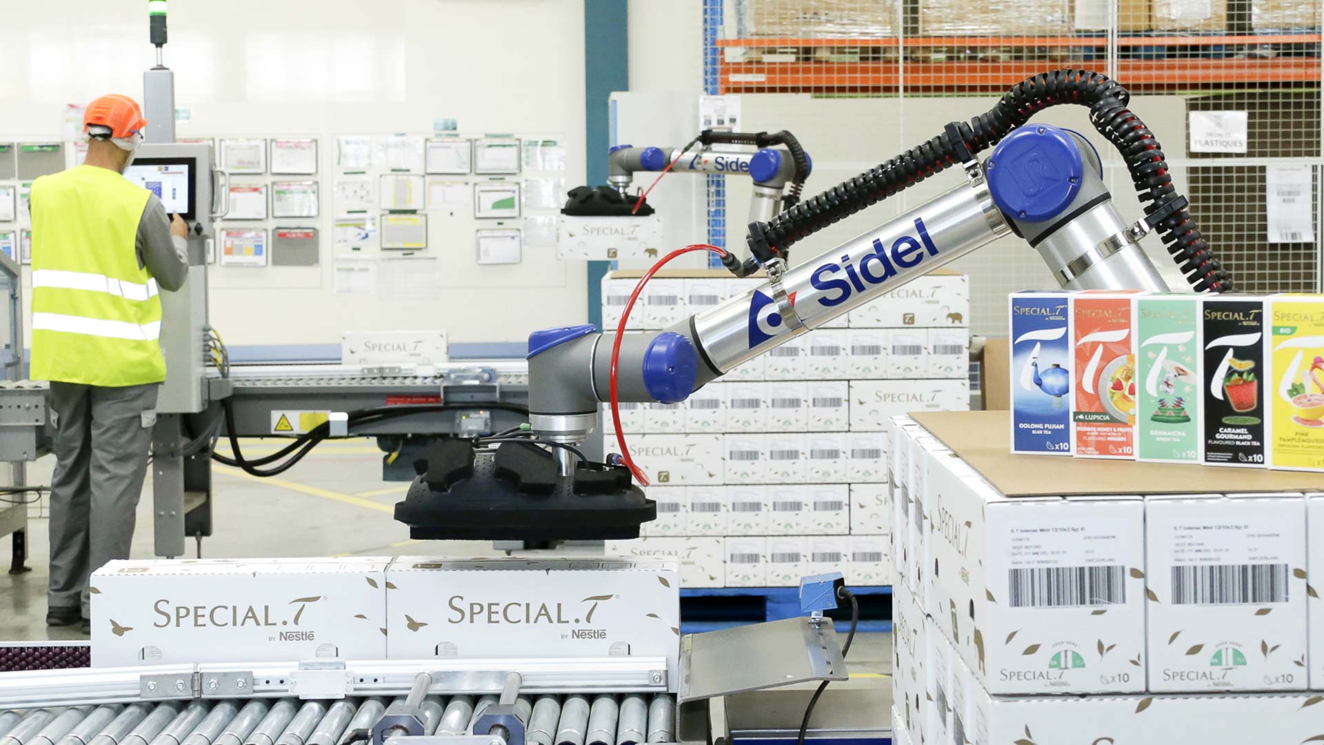 Nestlé Suisse SA Orbe, a factory producing tea in capsules under the well-known Special.T brand, was equipped with low and medium speed lines and was handling palletising manually. “As volume and productivity needed to increase, we were looking to use cobotic palletising to avoid repetitive non-ergonomic tasks for operators. We wanted them to handle activities with higher added value,” explains Cédric Rey, Fill & Pack Maintenance & Improvement Manager at Nestlé.