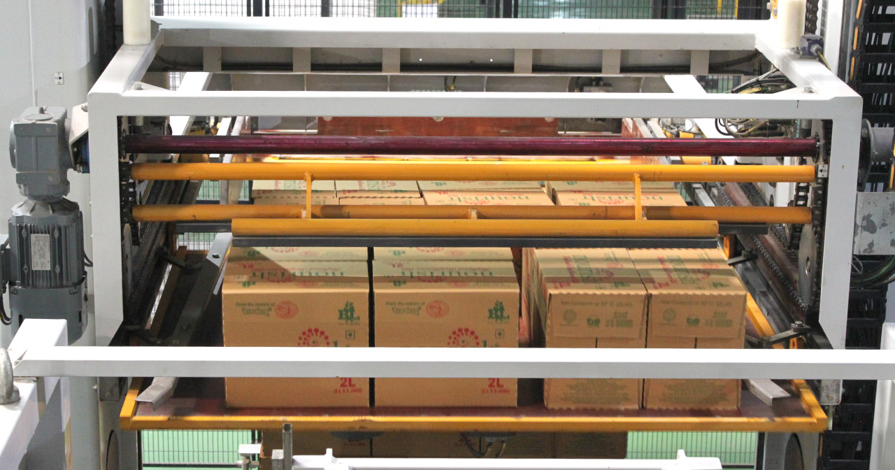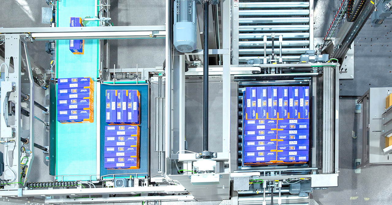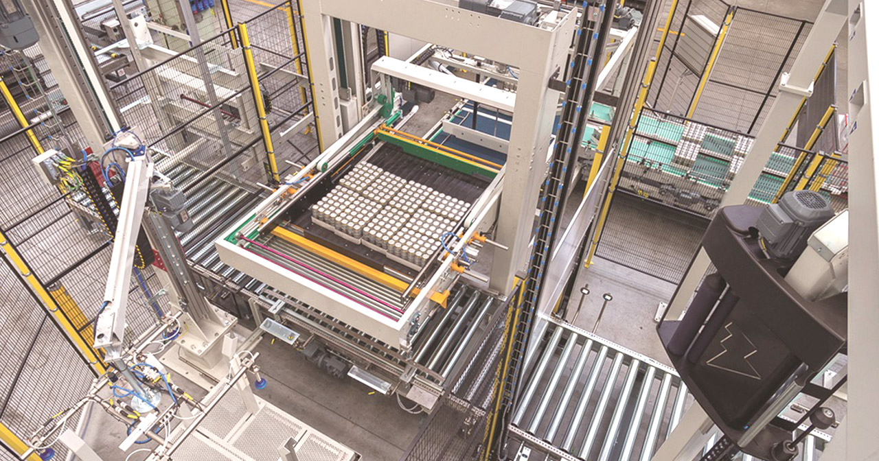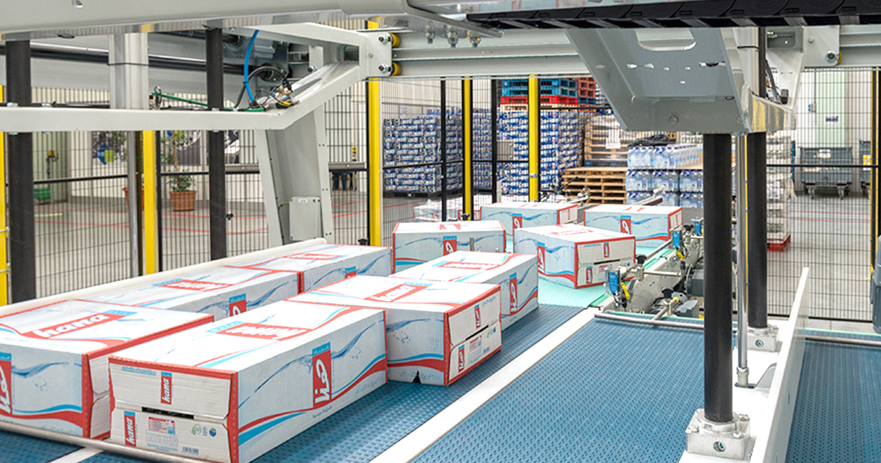 PalPack offers both productivity and flexibility. When in use, there is no interruption in the product flow at the palletizer infeed, while an extremely user-friendly HMI provides direct access to the various parameters of the installation. Changeovers are quick and automatic. In terms of performance, PalPack affords ergonomic, floor-level operation for simple, minimum maintenance, as well as instant programming of patterns and continuous and versatile layer preparation: 2, 4 or 6 robots optimize layer preparation depending on the product infeed speed.