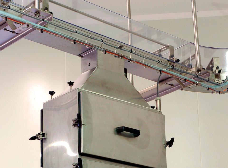 Hygiene and flexibility characterize the Flat Top solution, with its stainless-steel construction and hygienic guiding system, allied with its infeed and exit interface with other equipment.