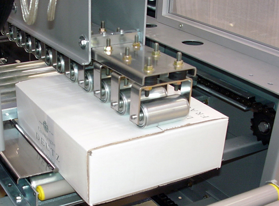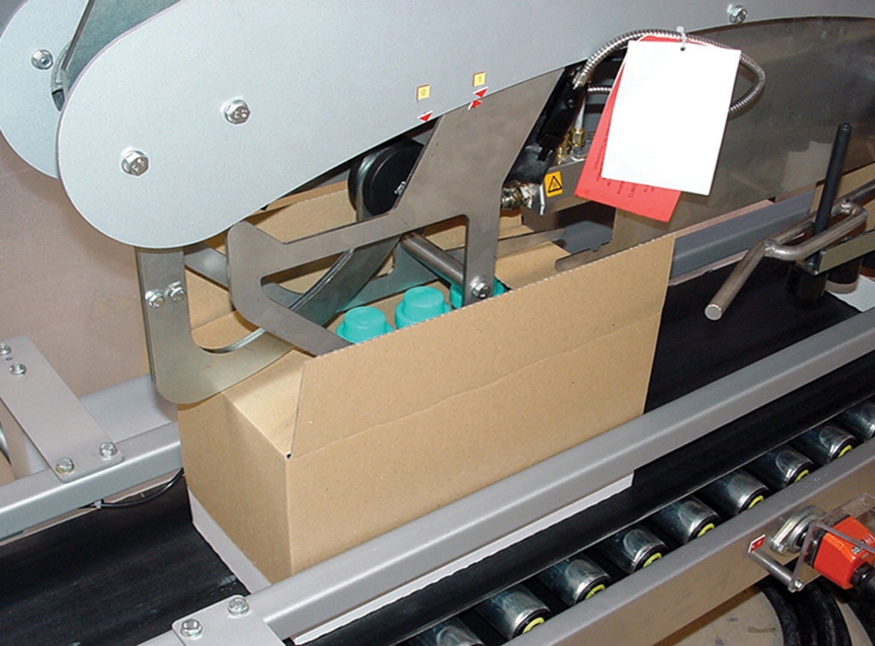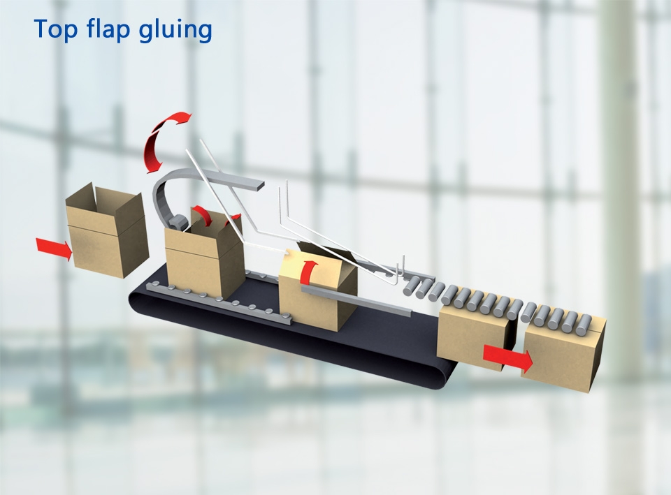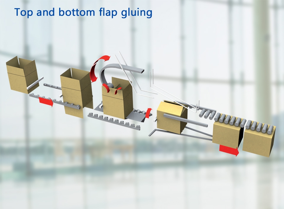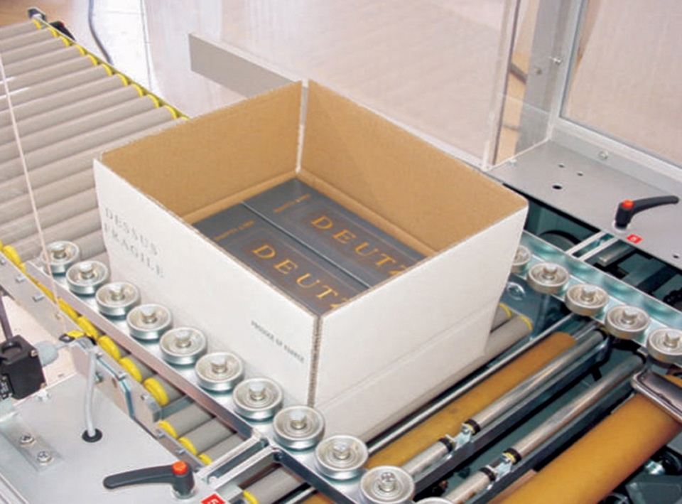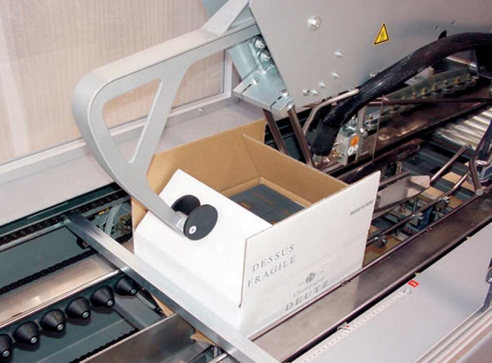 The internal flaps are folded precisely by a fixed guide and an articulated arm, then evenly glued, while the external flaps are folded progressively. Pressure is applied evenly to the sealed case. The C6 also comes with a rotating folding arm for high speeds.