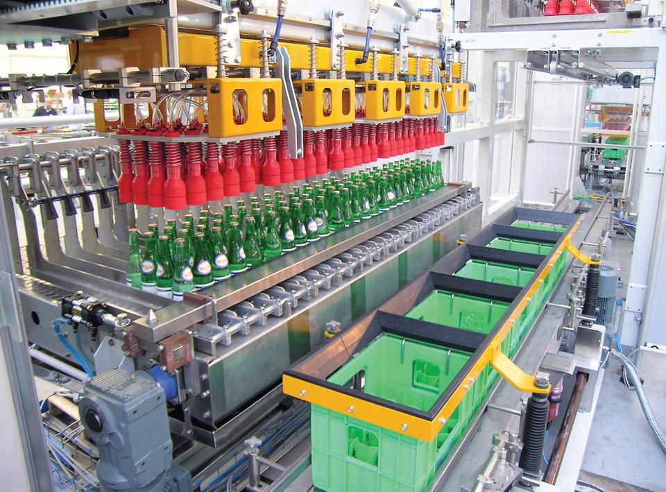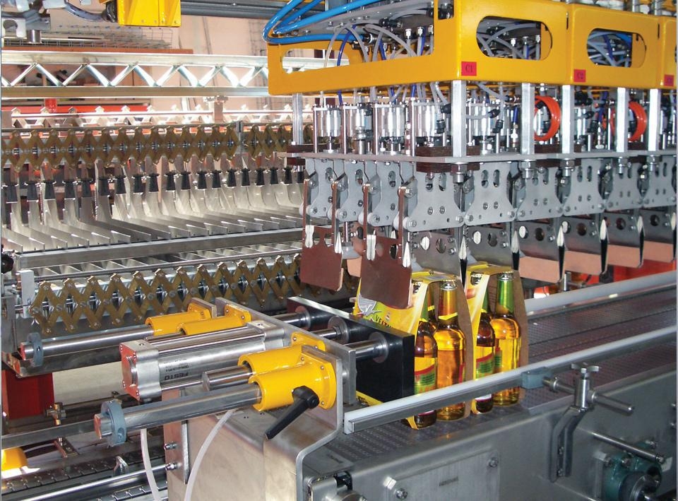 The movement of the beam carrying the heads is alternated. The bottles are gripped by individual, pneumatically-operated grippers. During normal production, operation is fully automatic.