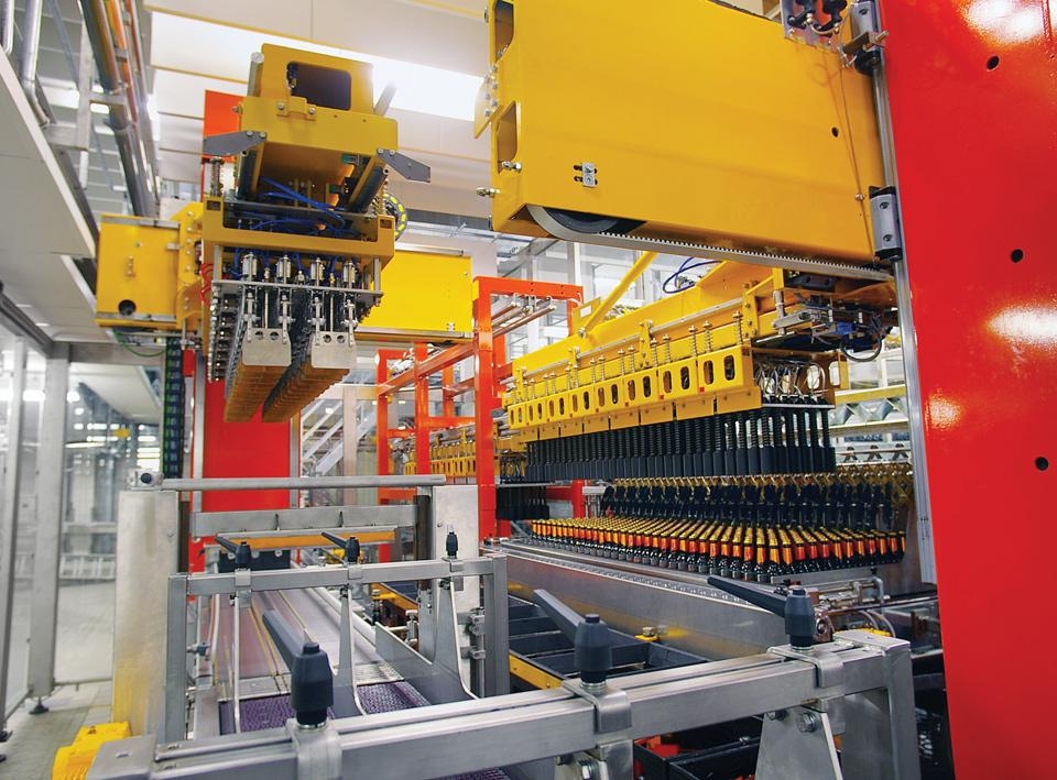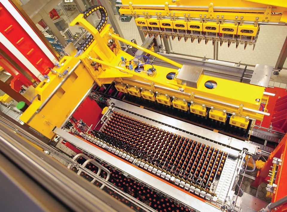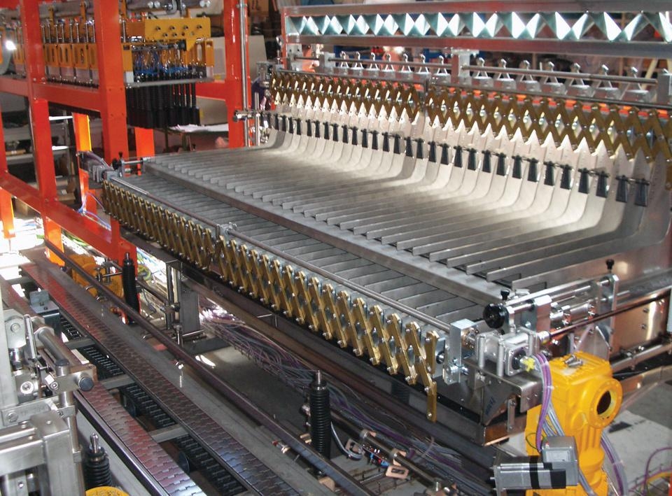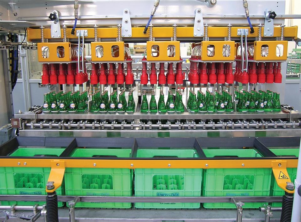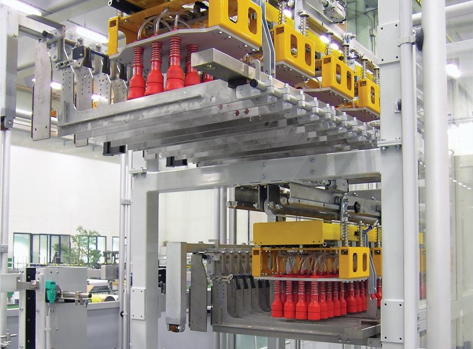The movement of the beam carrying the heads is alternated. The bottles are gripped by individual, pneumatically-operated grippers. During normal production, operation is fully automatic.