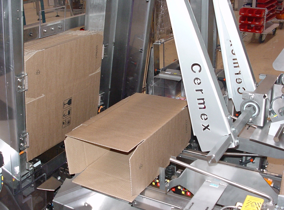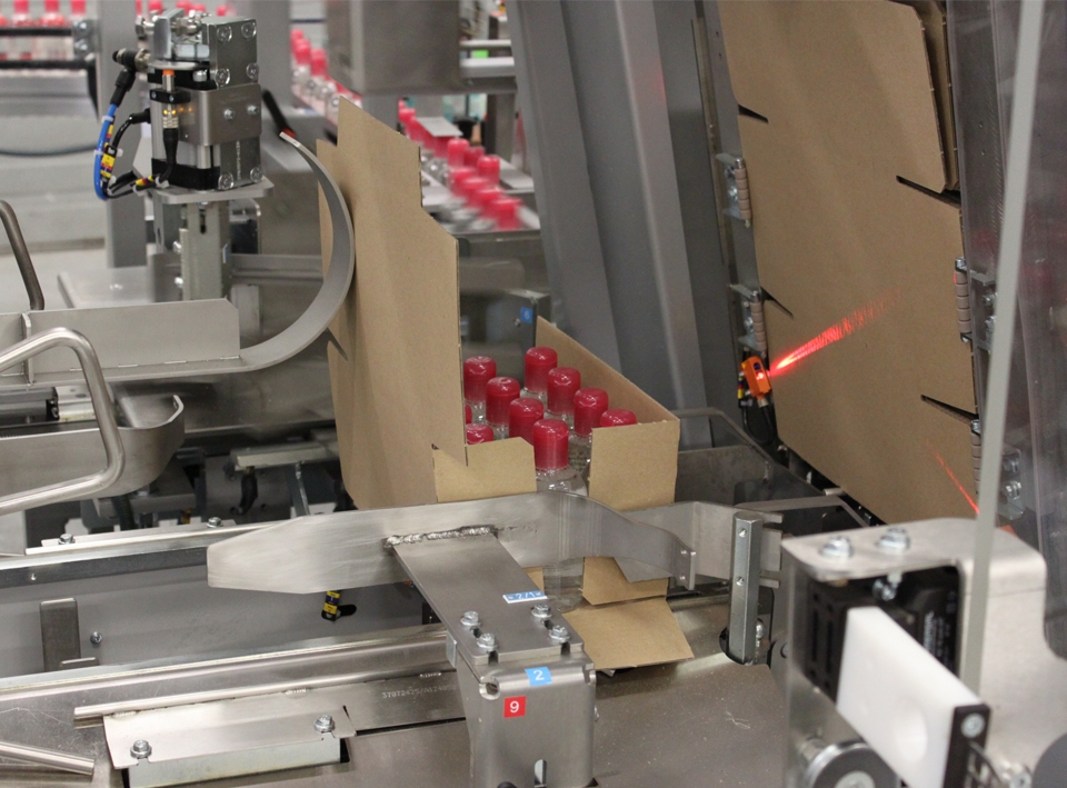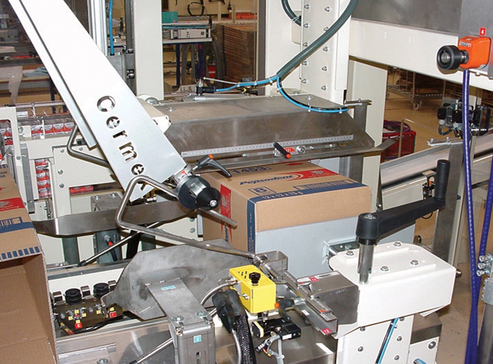 Our SW compact wrap-around case and tray packer has a patented case extraction system and a collating system adapted to the nature, shape and rigidity of the product. With its extremely compact footprint (4m²), it has the ability, within the same floor space, to seal cases with either glue or tape.
