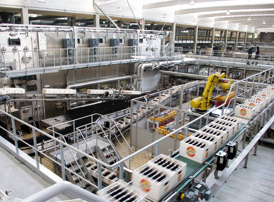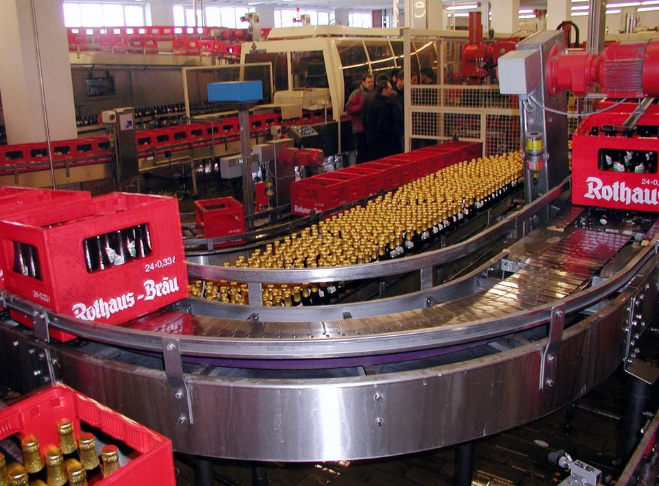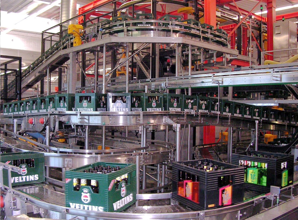 Sidel’s chain conveyors are heavy duty: made of stainless steel, they have a reinforced structure and offer an extended service life for all their components (chains, sprockets, wheels, returns, curves, etc.).