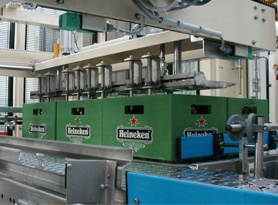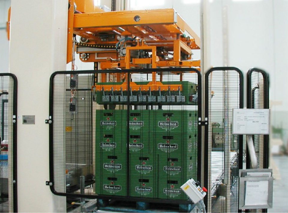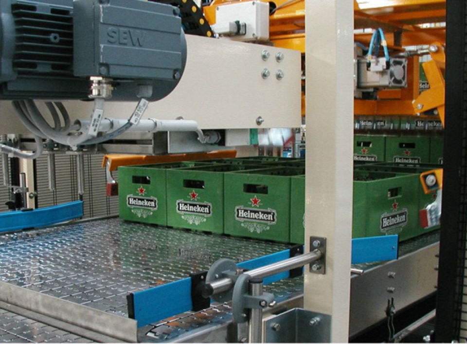 Its versatility is remarkable: it is suitable for low/medium speed applications and for both low-level and high-level depalletization, and caters for half and full-depth crates. It can handle all pallet standards up to 1,250 mm. it offers great layout flexibility with an in-line / 90° outfeed configuration. Quick adjustment is also guaranteed for frequent changeovers (patterns and pallet sizes).