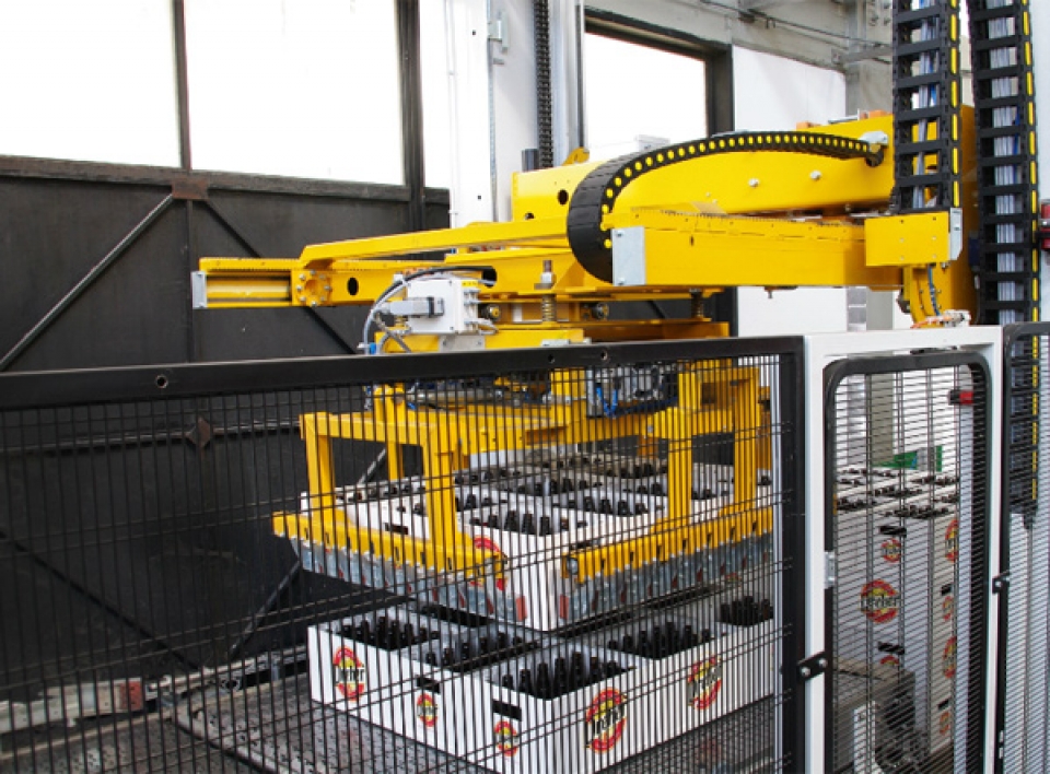 The PalKombi Gripping palletizer for plastic crates boasts numerous assets, including versatility, efficiency, simplicity of operation, and full safety.