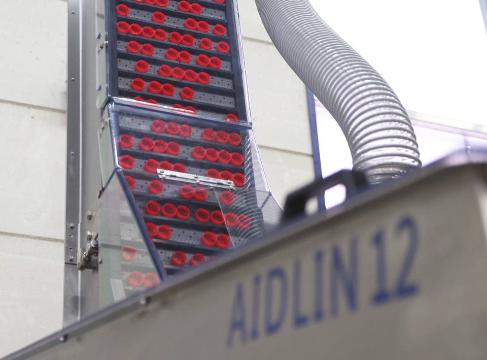 The Aidlin 12 low-speed cap feeder combines 3 functions in one: cap storage, cap sorting, and cap elevation.