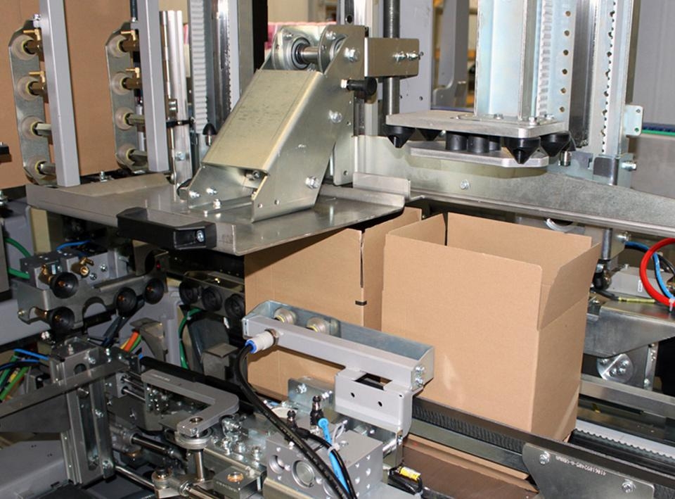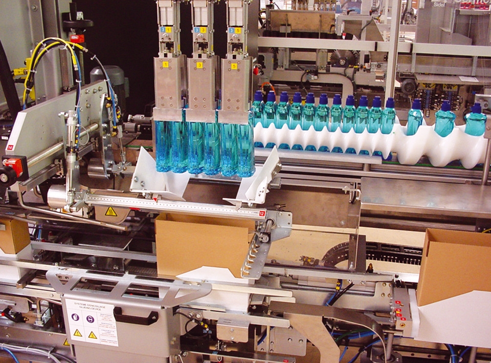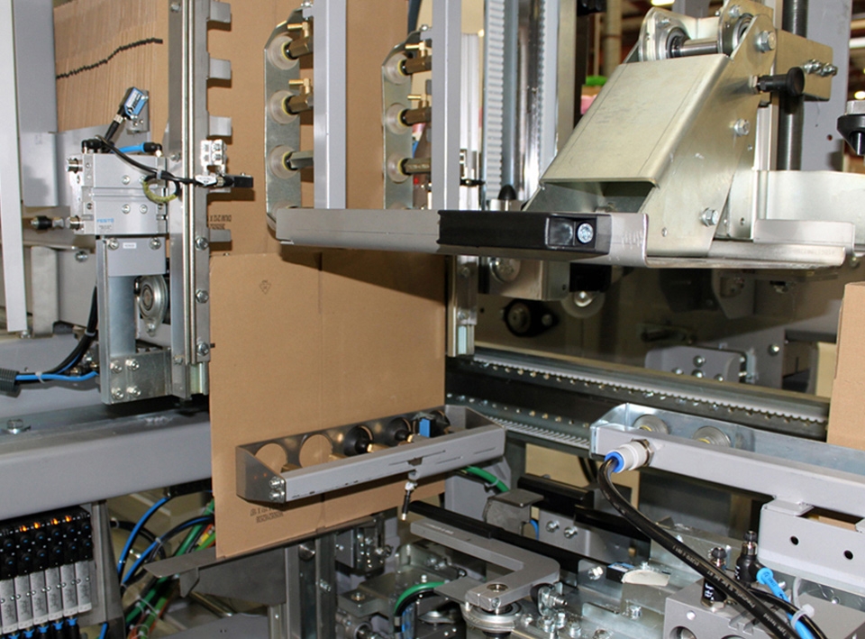 These case packers comprise a compact and positive vertical case-forming system equipped with 16 servo-motors in total, including 6 for the forming operation and 3 for the sealing operation. Sealing of top flaps is done using glue or adhesive tape, and case squaring is guaranteed. For human interventions, they have a cantilever structure for walk-in access into the heart of the machine.