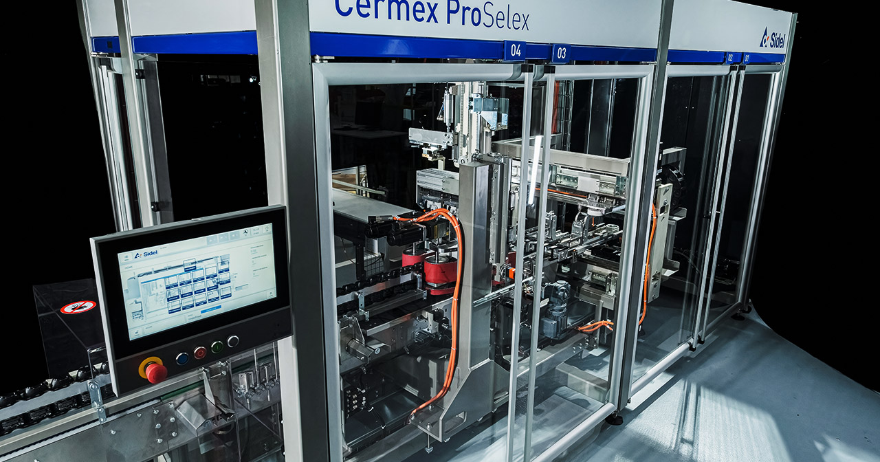The new Cermex ProSelex® generation is designed to meet all these requirements with a system that conveys, pitches, groups, and feeds shaped bottles into any type of case packers.