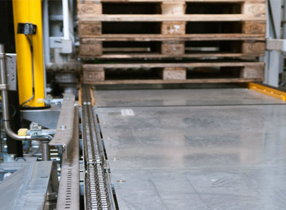 Sidel’s pallet chain conveyors are silent, modular and excellent value for money. Users have full access to all parts, so they are exceptionally easy to clean and maintain. They are suitable for Euro and Industrial pallets of sizes ranging from half-pallet to 1,200 mm, and can bear a maximum load of 2,000 kg.