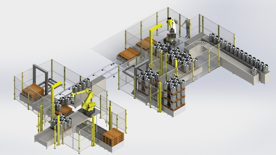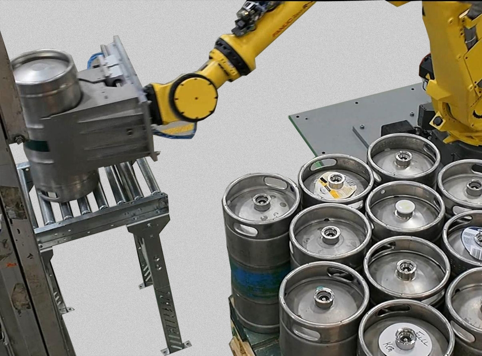 Sidel’s robotic keg de-palletizing & palletizing solution is a vision system that detects randomly-placed kegs on a pallet, keg orientation and cap presence, with cap removal as an option.