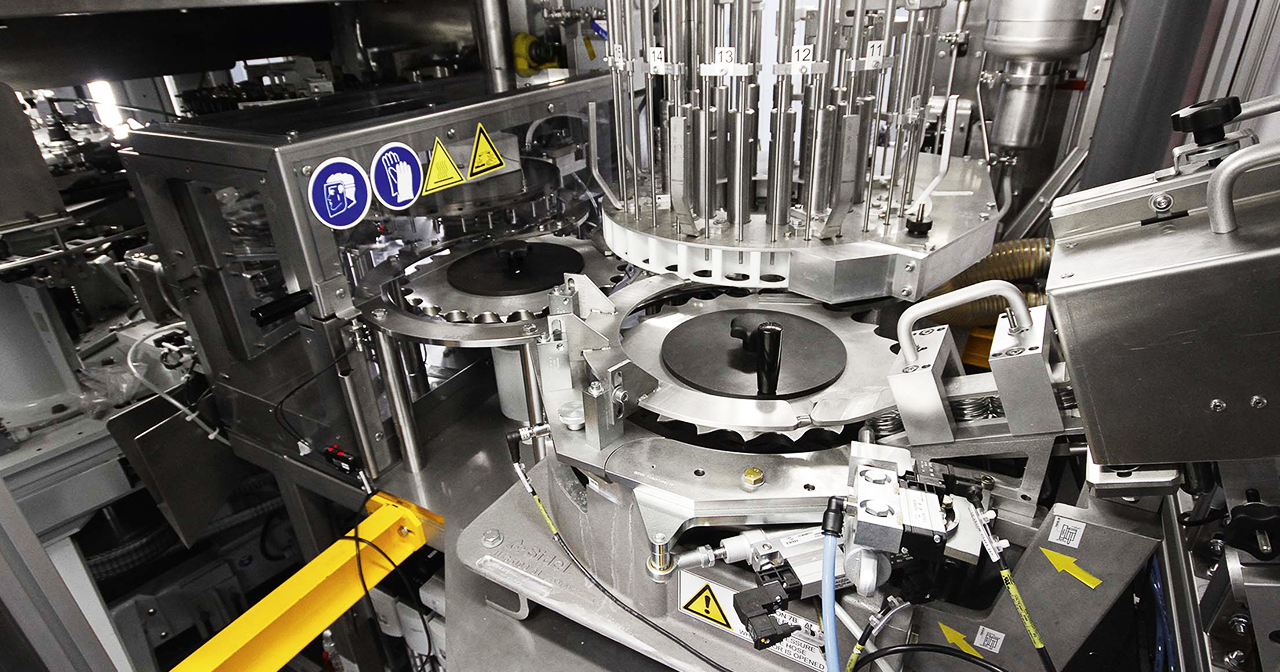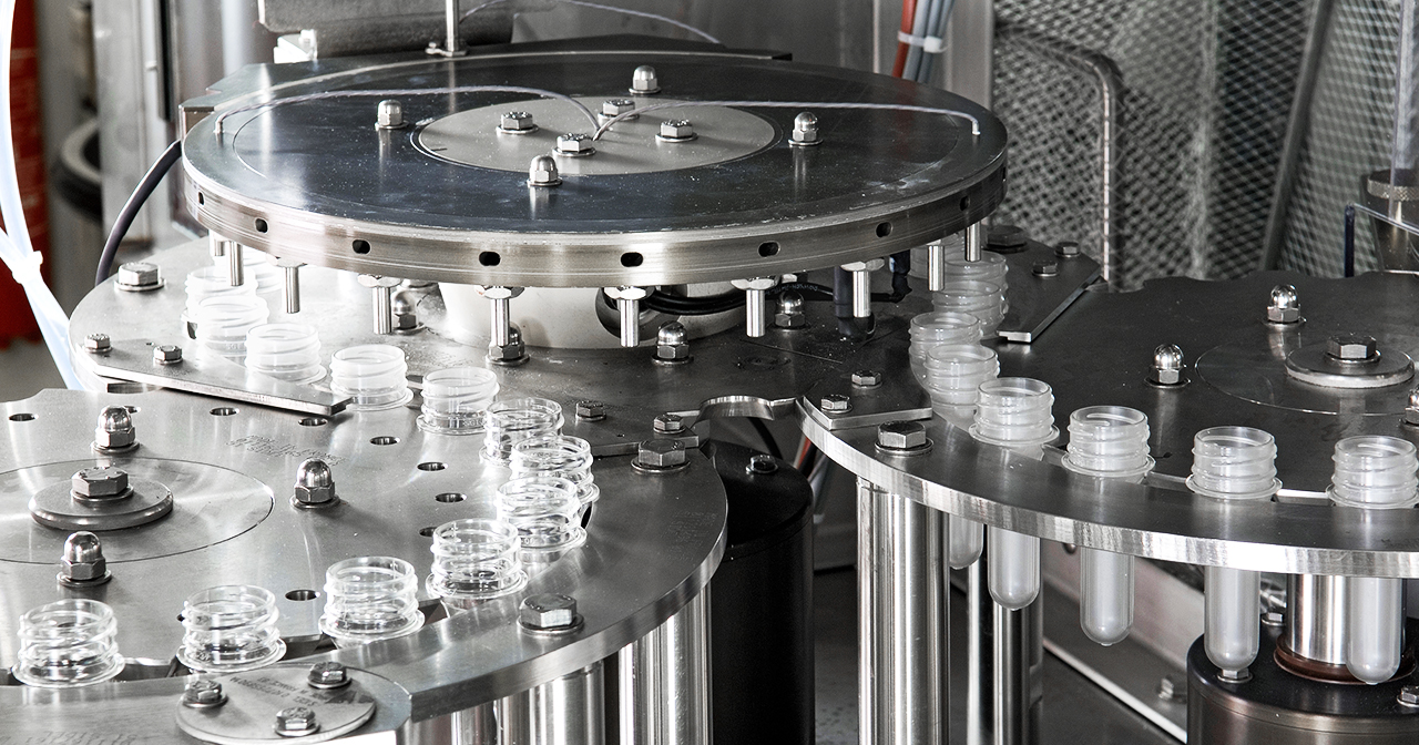 The preform is sterilised with hydrogen peroxide (H2O2) before being heated in the oven, which activates the H2O2 from the existing preform-heating stage and achieves a high level of decontamination. This results in a reduced risk of peroxide residue remaining within the preform. The same dry sterilisation technology is applied for caps with Capdis™.