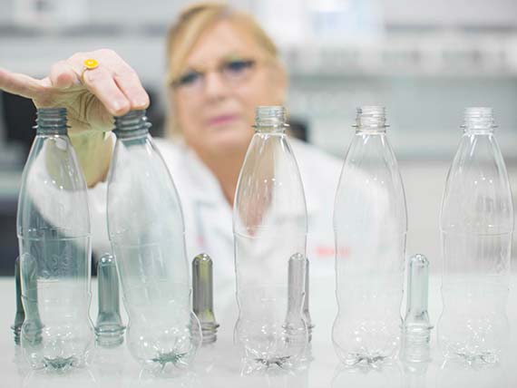 Our experts therefore analyse every aspect in the recycling and bottle production processes, including post-consumer PET bales, flakes and the pellets to be injected into the preform as well as rPET bottle blow moulding and industrialisation.