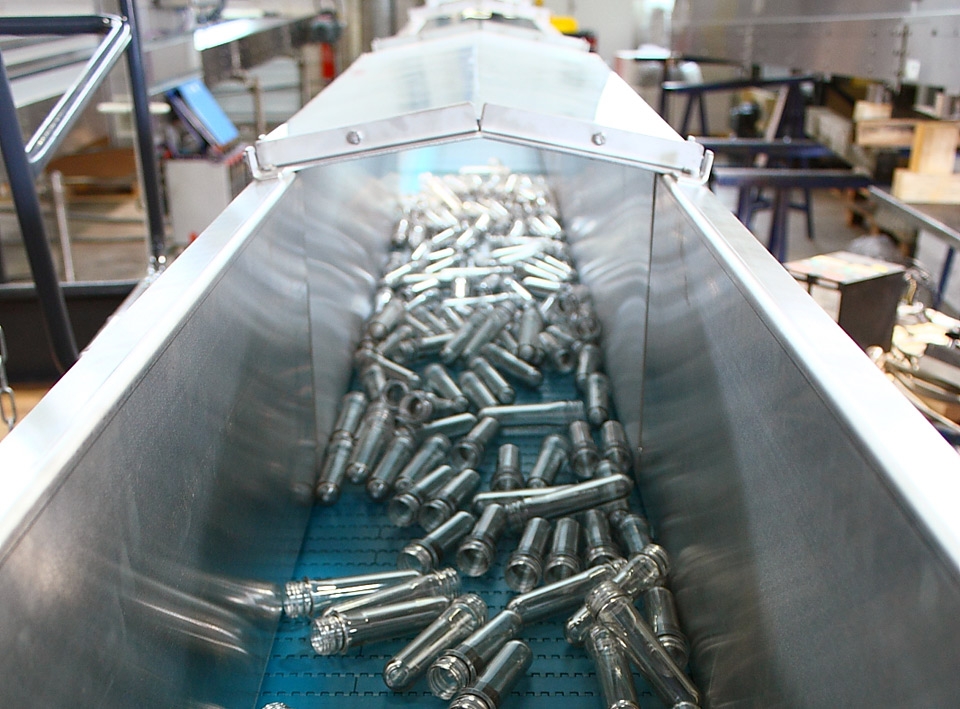 Our preform conveyor also proposes variable infeed speeds for production start-up and format changeovers.